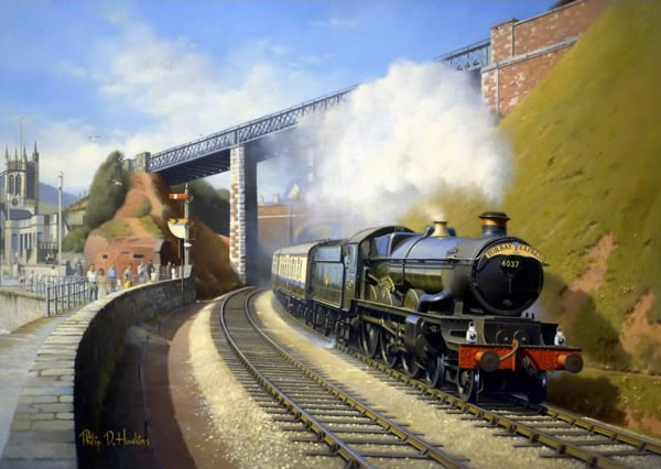The sea wall at Teignmouth, witnesses the passage of the London bound ‘Torbay Express’ headed by a Newton Abbot ‘Castle’ No. 4037 ‘The South Wales Borderers’ during the summer of 1958.