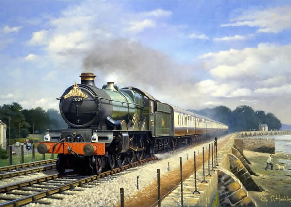 Castle No. 7029 ‘Clun Castle’ hugs the bank of the River Exe approaching Starcross in Devon with the westbound ‘Cornishman’ during the 1950’s. Soon the train would be passing along the superb coast line through Dawlish and Teignmouth giving holiday makers a sneak preview of their well earned break.