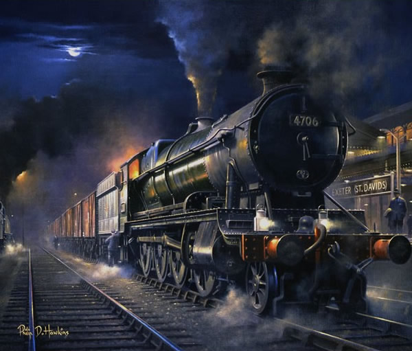 Churchward 2-8-0 No. 4706 waits noisily on the goods avoiding line at Exeter St Davids with a down fitted freight.