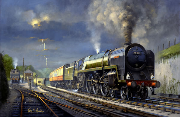 A ‘Britannia’ Pacific No.70019 ‘Lightning’ is almost at the summit of Dainton Bank in Devon with an express for London, Paddington during the mid-1950s. Dainton was one of the notorious ‘Devon banks’ that plagued the Great Western main line between Newton Abbot and Plymouth. Not only were the gradients severe but frequent twists and turns contrived to make for operational difficulties particularly in adverse weather conditions.