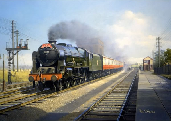 Tamworth was a veritable Mecca during the 1950’s for trainspotters who could witness scenes such as this ‘Royal Scot’ 4-6-0 No. 46132 ‘ The King’s Regiment Liverpool ‘ thundering through Low Level station with the down ‘Red Rose’