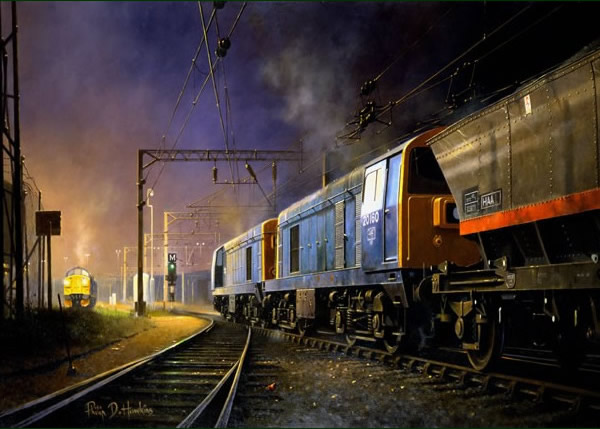 A pair of class 20’s heave an MGR train bound for Ironbridge power station out for Bescot yard. The depot can be seen on the left.
